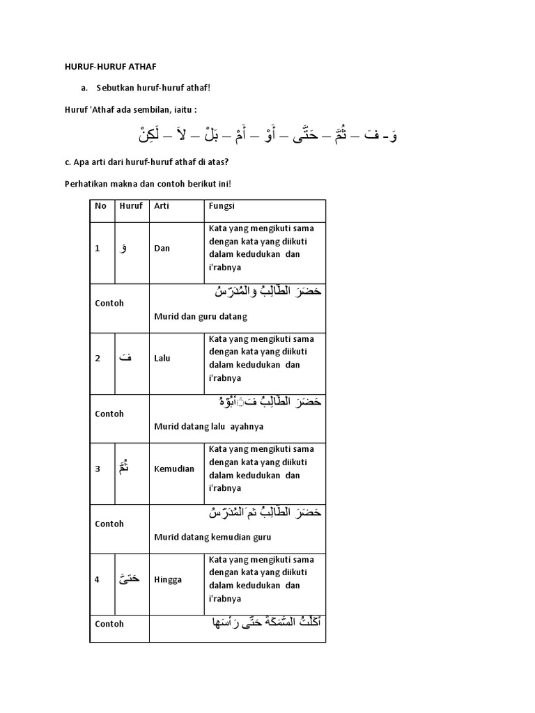 Selain itu juga athaf memiliki huruf yang harus diketahui agar memudahkan kita menentukan mathuf atau mathuf alaih-nya. Pengertian dari huruf athaf. Terdapat 10 huruf athaf dalam menghubungkan.